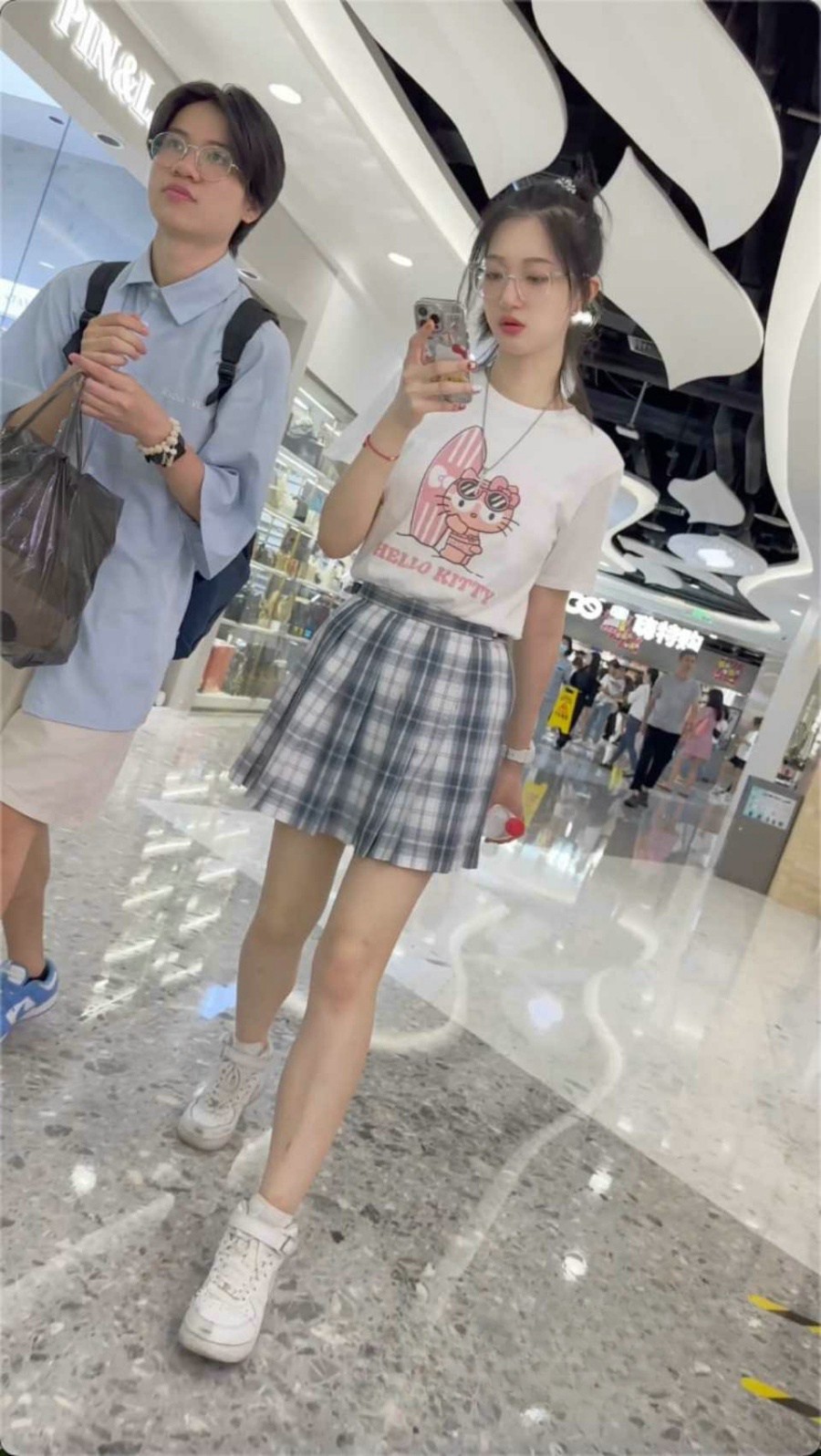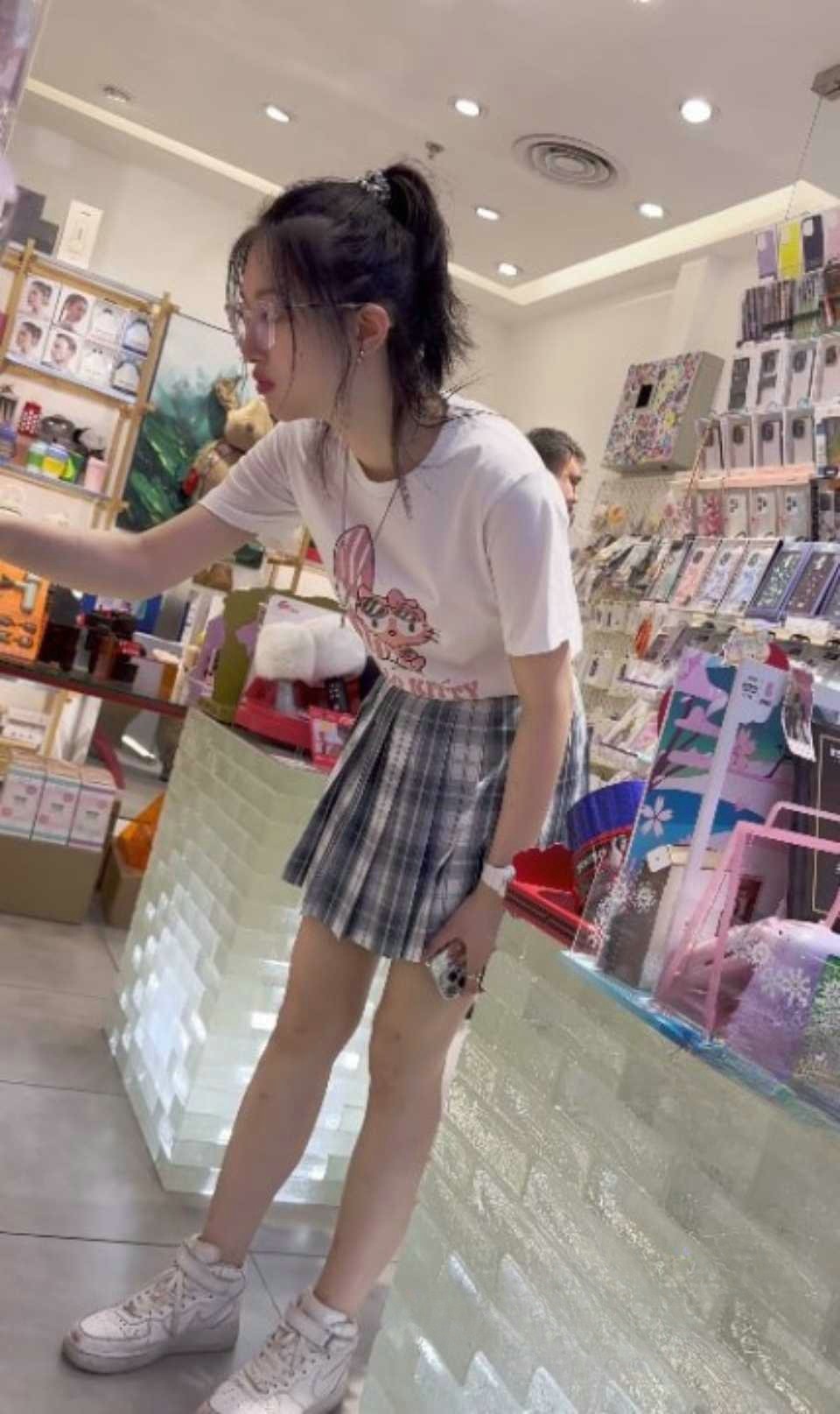 抄底大神KFC商场偷拍 高气质JK制服眼镜妹 超白色内裤走光